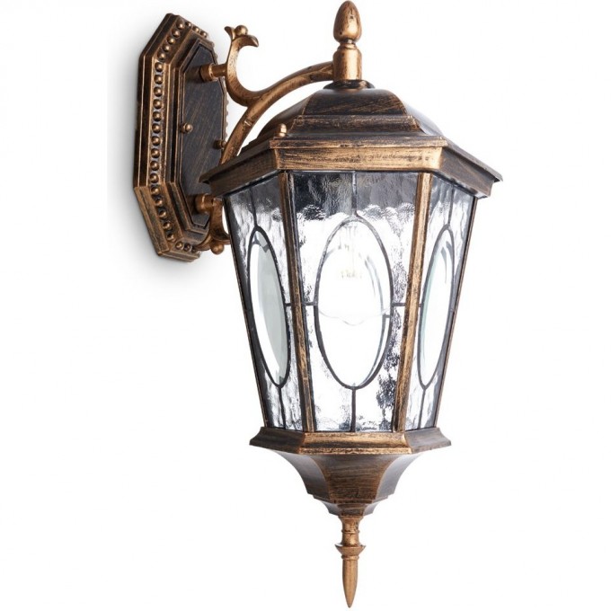 Светильник садово-парковый FERON PL151 шестигранный на стену вниз 60W E27 230V, черное золото 11320