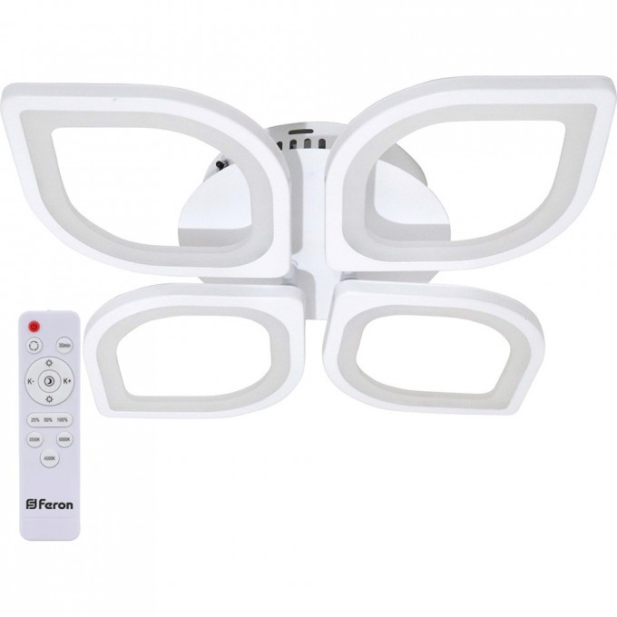 Светильник накладной светодиодный, потолочный управляемый (ДПО) FERON AL5950, 86W, 3000К-6500K (теплый-белый-дневной), 230V, 5000Lm, IP20, угол рассеивания 120°, цвет белый, корпус штампованная сталь, рассеиватель акрил и металл, 370*370*80